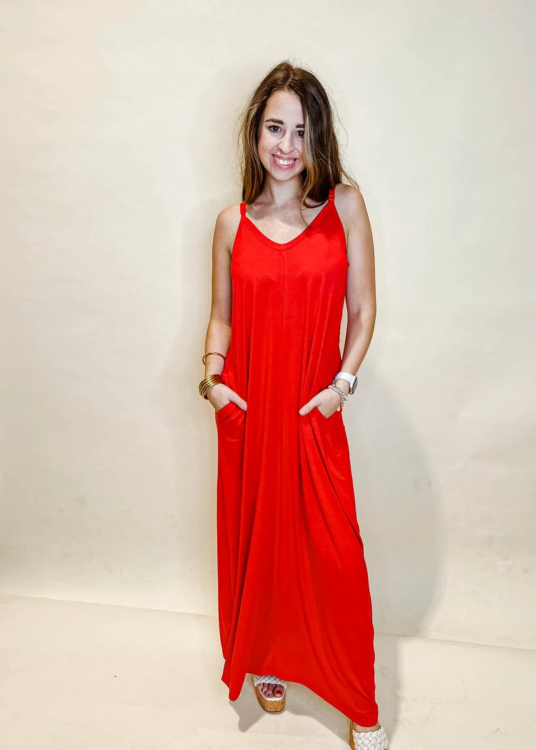A Maxi you will be reaching for no matter what season or occasion you are going to! Meet the Morning Side Maxi Dress. All things stretchy, comfy, but still having a put together look you can dress up or down. The Morning Side Dress features a v-neck neckline, pockets on both sides, and adjustable straps.Â