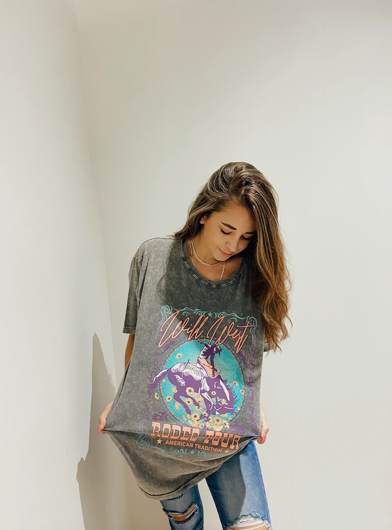 - Show off your western spirit with the Zutter Wild West Rodeo Graphic Tee Tops. This stylish t-shirt features a bold rodeo graphic, making it a perfect choice for casual outings or themed events.